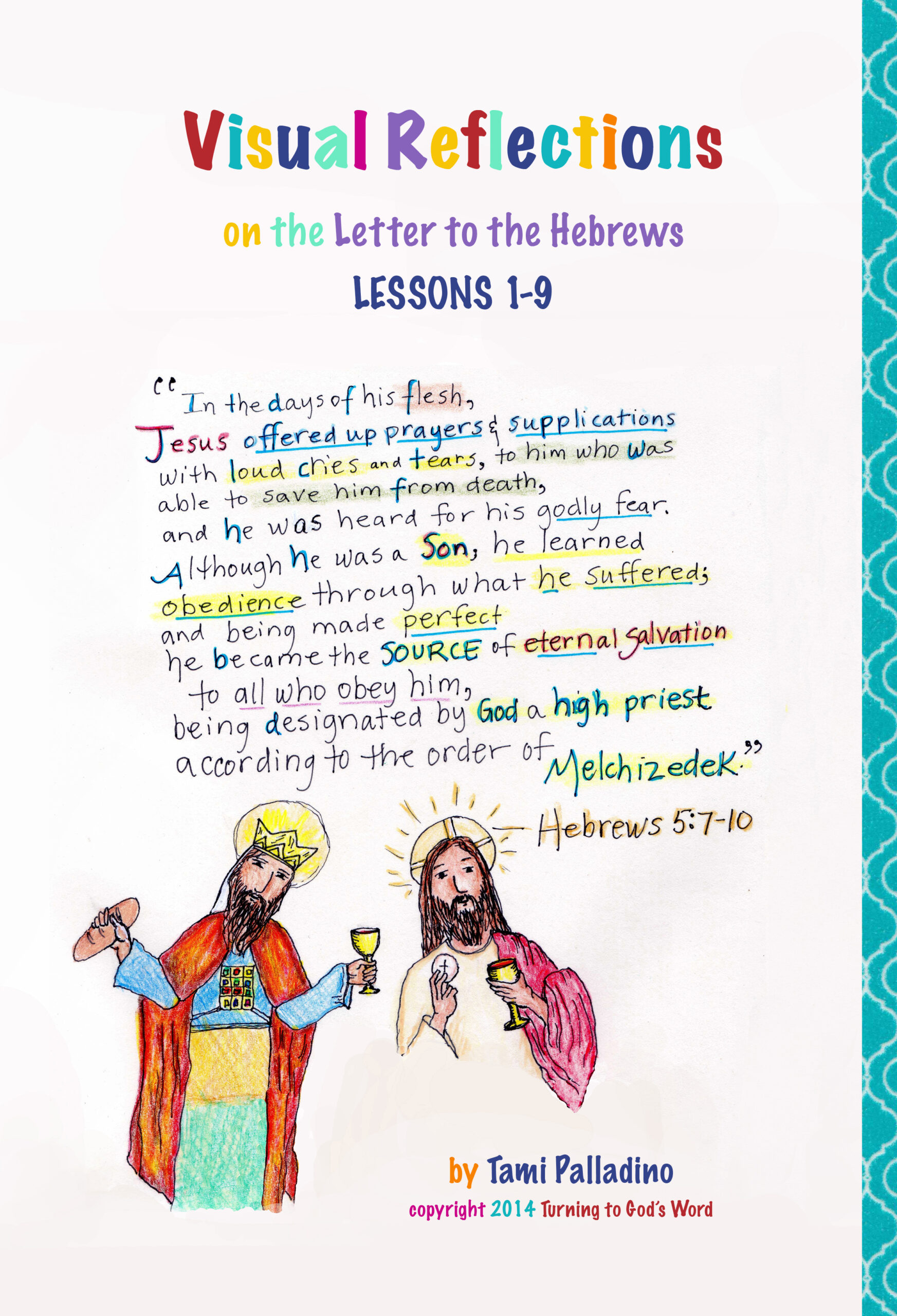 created to accompany the Turning to God’s Word Catholic Bible study, The Letter to the Hebrews: An Explanation of the Mechanism of Our Salvation, written by Jennifer Phelps and Matthew Phelps. Tami’s illustrations demonstrate a type of lectio divina that relies on visualization as an aid to deepening prayer life. We encourage you to try your hand at creating a similar prayer journal. To view Tami’s journal, click on the following links: